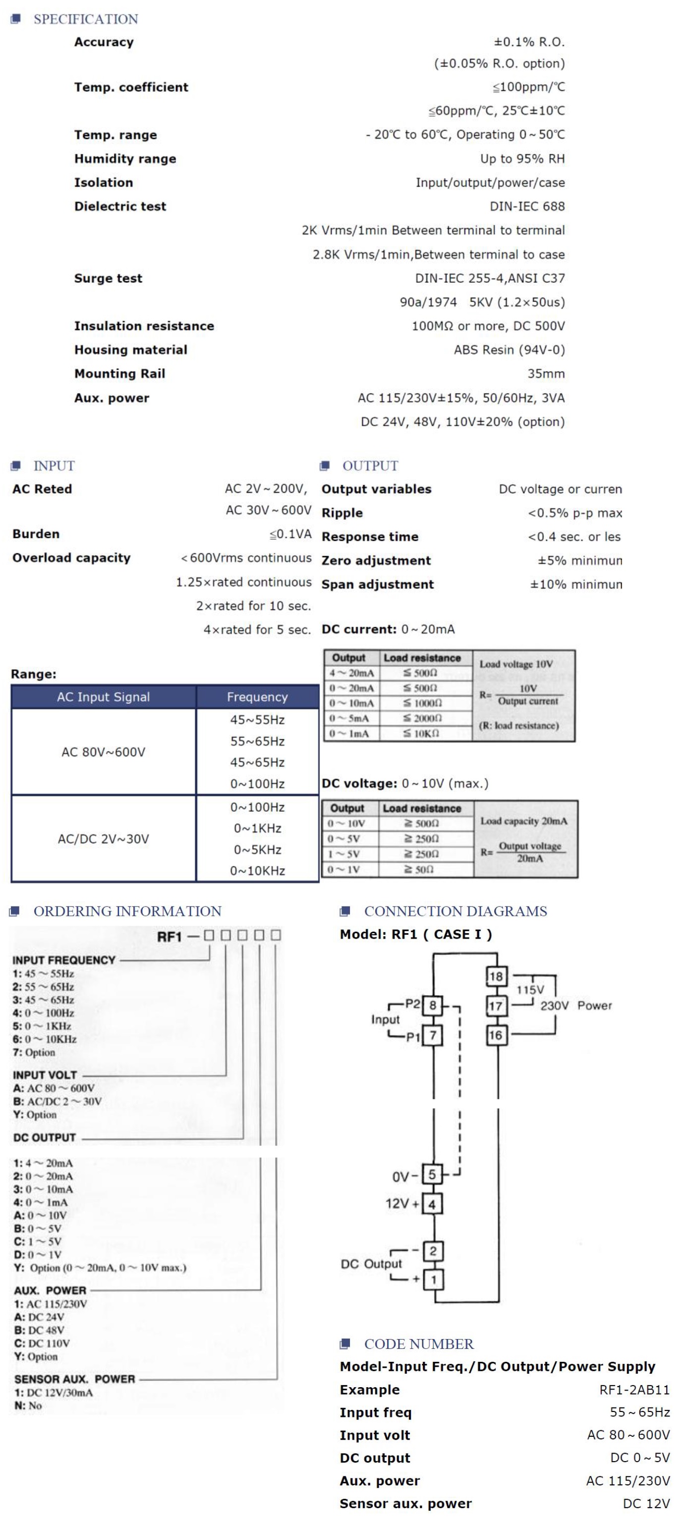 Model RF1 transducer is intended for frequency measurement.
