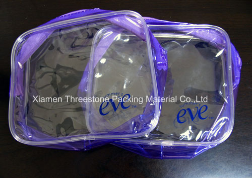 Material: PEVA Feature: nice printing,up to 8 spot colors, environment friendly, with zipper, reclosable, custom made shape, design and size.