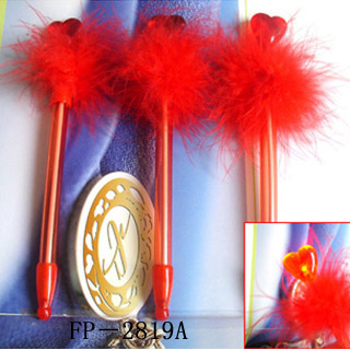 供应发光桃心羽毛笔,桃心规格2.8cm,笔长19cm。笔杆可印刷logo,是最佳的广告礼品。笔为按压式发光。