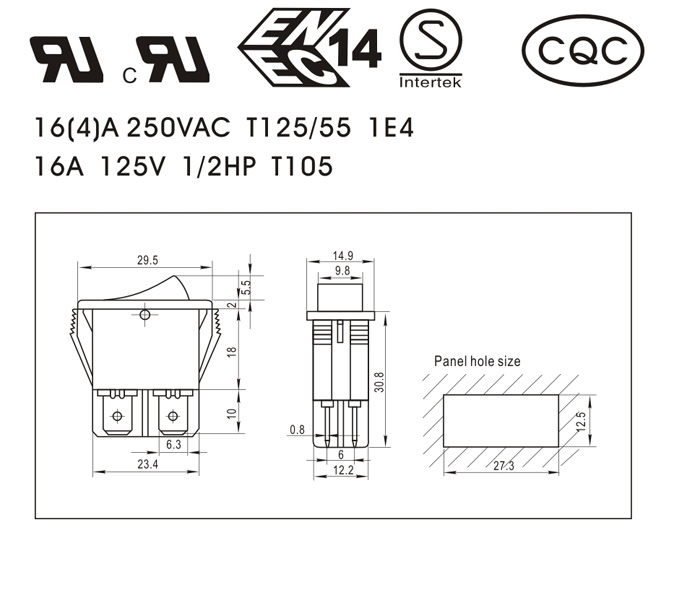 16A 125VAC 1/2HP T105