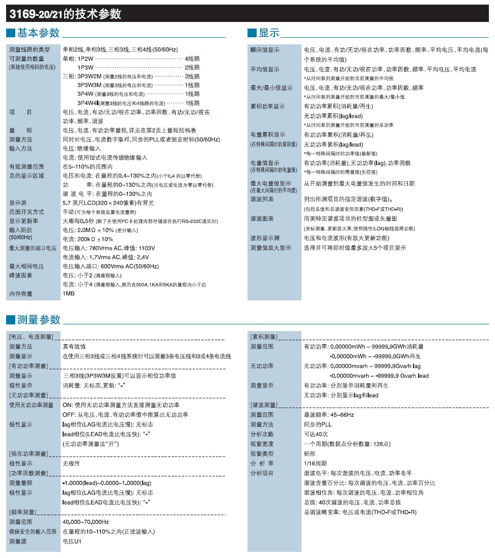 Product Code : 钳式功率计 3169-20, 3169-21