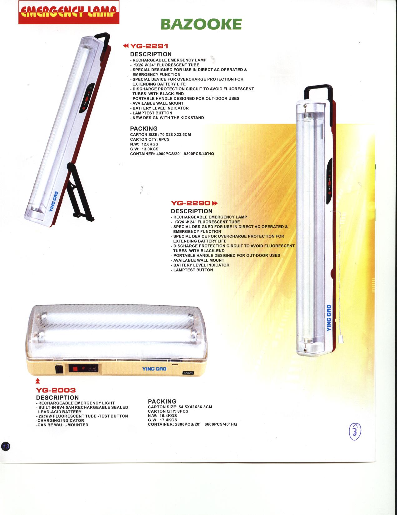 Product Name : Rechargeable Emergency Lamp - Bazooke