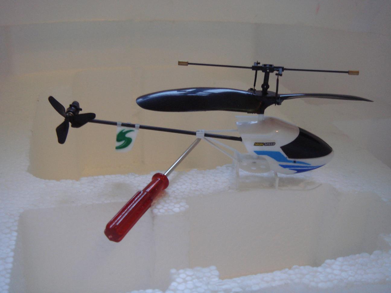 Micro Pontiac Main rotor diameter is 130mm (5.25-inch) Length: 170mm (6.5-inch) excluding rotors Rear rotor diameter is 30mm (1.25-inch) Product weight: only 10g, including flight battery Rechargeable flight battery: high-capacity integral lithium-polymer battery Charger: integral transmitter/charger supplied with LED indicator/auto shut-off Simply plug-in and charge Easy to use connections Charging time: 6 to 8 minutes for full charge Flight duration: 10 minutes or more between charges Packing Size: 66*39*69 CM Certificate: CE/ROHS Batteries required: 6 x 1.5V AA alkaline batteries for transmitter/charger