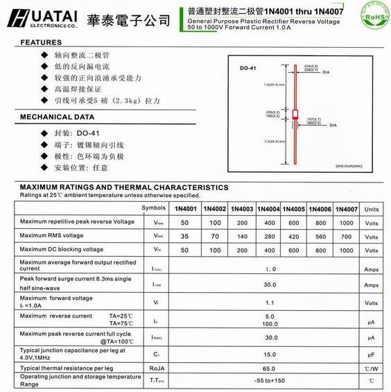 File Name : 调整大小 General Purpose Plastic Rectifier- 普通塑封整流二极管 1N4001 thru 1N4007.jpg