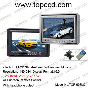 Product Name : 7" Stand alone headrest Monitor with shroud and IR transmitter,Remote control,3 Video in